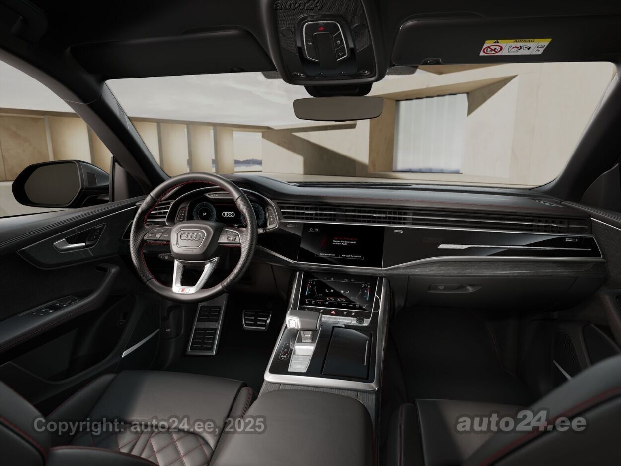 kliimaautomaatik, automaatpidurdussüsteem, roolivõimendi, kesklukustus, ABS pidurid, turvapadi, elektrooniline seisupidur, immobilisaator, lisapidurituli, sõiduraja hoidmise abisüsteem, sõiduraja vahetamise abisüsteem, liiklusmärkide tuvastus ja kuvamine, pimenurga hoiatus, veojõukontroll, vihmasensor, ISOFIX lasteistme kinnitus, kõrvalistuja turvapadja väljalülitamise võimalus, automaatne paigalseismise funktsioon / mägistardi abi, valgustuspakett, udutuled, LED, päevasõidutulede automaatne lülitus, kaugtulede ümberlülitamise assistent, valuveljed, reguleeritav roolisammas, multifunktsionaalne rool, nahkkattega rool, sportrool, soojendusega rool, stereo, helivõimendi, kõlarid, subwoofer, Apple CarPlay, Android Auto, elektriline antenn, ekraan, navigatsiooniseade, autokompuuter, käed vabad süsteem, iluliistud salongis (puitdekoor), jalamatid, topsihoidjad, nahkkattega käigukanginupp, tume laepolster, nahkpolster, 2x elektriliselt reguleeritavad istmed (1x mäludega), istmed reguleeritava kõrgusega, 2x istmesoojendused, ventileeritavad istmed (ees), käetugi ees, tagaistme seljatugi allaklapitav, sportistmed, elektrilised välispeeglid (soojendusega), 4x elektrilised akende tõstukid, toonitud klaasid, püsikiiruse hoidja (eessõitjaga distantsi hoidev), mootori eelsoojendus, salongi eelsoojendus, eraldi kliimaseade tagaistmetele, parkimisandurid (ees, taga), parkimiskaamera (360), digitaalne näidikutepaneel, info kuvamine esiklaasile, telefoni juhtmevaba laadimine, võtmeta avamine, võtmeta käivitus, uste servosulgurid, start-stopp süsteem, 12v pistikupesad, õhkvedrustus, reguleeritav vedrustus, pakiruumi avamine elektriliselt, veokonks (elektriline), tagaklaasi soojendus, välistemperatuuri näidik, topeltklaasid, tagaklaasi puhasti, 4-ratta pööramine, Juhtimisseadmed - nelikroolimine/juhitav tagatelg, S line õhkvedrustus "Adaptive air suspension", elektrooniliselt seadistatav õhkvedrustus, Haakeseade (elektriliselt juhitav) - nupuvajutusega pagasiruumist võimalik seadistada auto valmis haagise vedamiseks, S line rooliratas - multifunktsionaalne "Plus" (12 juhtnuppu) kolme kodaraga sportrool, käiguvahetusfunktsiooniga ja elektrilise soojendusega, Istmed - esiistmed ventilatsioonifunktsiooniga, Istmed - esiistmed ventilatsioonifunktsiooniga, Laiendatud nahapakett - III, "Fine nappa" nahkpolstriga kaetud osaliselt keskkonsool, uste käetoed, uste ja armatuuri ülaosa, sh päikeserulood, S line dekoorliistud interjööris - naturaalne hall tammepuit, Kõlarisüsteem "Bang & Olufsen Premium Sound System 3D kõlaga" - 17 kõlarit, 16 kanaliga helivõimendi koguväljundvõimsusega 730 vatti, Pikendatud tehasegarantii - 5 aastat (2 aastat + 3 aastat lisagarantiid), läbisõiduni 100 000 km, Servosulgur ustele - automaatne mittetäielikult sulgunud ukse sulgemine, Esiklaasile info kuvamise võimalus - "Head-up display", Meedialiides - "Audi application store and smartphone interface", Esiklaasile info kuvamise võimalus - "Head-up display", Assistentpakett "Plus" - sh assistentpakett "City", "Tour" ning parkimisassistent koos 360° kaameratega, Seisuküte/ventilatsioon, võimaldab taimeri või kaugjuhtimispuldi kaudu käivitada autonoomse soojenduse või ventilatsiooni, S line välispakett, sh sportliku disainiga esi- ja tagakaitserauad, täisvärv auto alaosas, S line logod auto külgedel ja valgustusega läve katteliistudel, Esilaternad "HD Audi Matrix LED"- tehnoloogiaga, sh selektiivne kaugtulede valgusvihu reguleerimine ja dünaamilised suunatuled esi-ja tagalaternas, S line sportpakett, Klaasid - külgmised klaasid topeltklaasid (vähendab salongi kostuvat välismüra), S line istmepolstri lisa, punased õmblused - sh punased õmblused istmetel, uksepolstritel, roolil ja keskkonsoolil ning punased turvavööd |