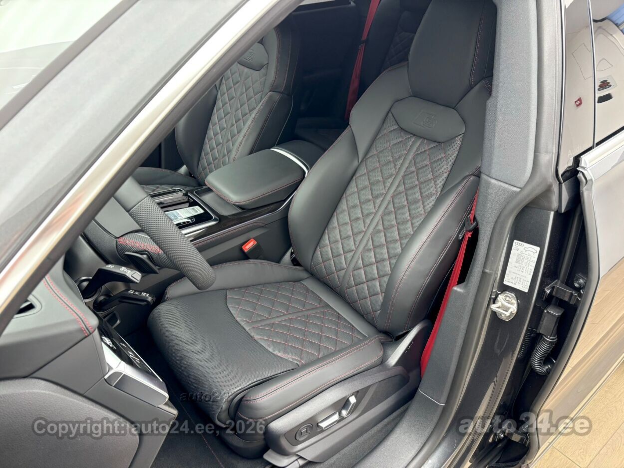 Varustus: kliimaautomaatik, automaatpidurdussüsteem, roolivõimendi, kesklukustus, ABS pidurid, turvapadi, elektrooniline seisupidur, immobilisaator, lisapidurituli, sõiduraja hoidmise abisüsteem, sõiduraja vahetamise abisüsteem, liiklusmärkide tuvastus ja kuvamine, pimenurga hoiatus, veojõukontroll, vihmasensor, ISOFIX lasteistme kinnitus, kõrvalistuja turvapadja väljalülitamise võimalus, automaatne paigalseismise funktsioon / mägistardi abi, valgustuspakett, udutuled, LED, päevasõidutulede automaatne lülitus, kaugtulede ümberlülitamise assistent, valuveljed, reguleeritav roolisammas, multifunktsionaalne rool, nahkkattega rool, sportrool, soojendusega rool, stereo, helivõimendi, kõlarid, subwoofer, Apple CarPlay, Android Auto, elektriline antenn, ekraan, navigatsiooniseade, autokompuuter, käed vabad süsteem, iluliistud salongis (puitdekoor), jalamatid, topsihoidjad, nahkkattega käigukanginupp, tume laepolster, nahkpolster, 2x elektriliselt reguleeritavad istmed (1x mäludega), istmed reguleeritava kõrgusega, 2x istmesoojendused, ventileeritavad istmed (ees), käetugi ees, tagaistme seljatugi allaklapitav, sportistmed, elektrilised välispeeglid (soojendusega), 4x elektrilised akende tõstukid, toonitud klaasid, püsikiiruse hoidja (eessõitjaga distantsi hoidev), mootori eelsoojendus, salongi eelsoojendus, eraldi kliimaseade tagaistmetele, parkimisandurid (ees, taga), parkimiskaamera (360), digitaalne näidikutepaneel, info kuvamine esiklaasile, telefoni juhtmevaba laadimine, võtmeta avamine, võtmeta käivitus, uste servosulgurid, start-stopp süsteem, 12v pistikupesad, õhkvedrustus, reguleeritav vedrustus, pakiruumi avamine elektriliselt, veokonks (elektriline), tagaklaasi soojendus, välistemperatuuri näidik, topeltklaasid, tagaklaasi puhasti, 4-ratta pööramine, Juhtimisseadmed - nelikroolimine/juhitav tagatelg, S line õhkvedrustus "Adaptive air suspension", elektrooniliselt seadistatav õhkvedrustus, Haakeseade (elektriliselt juhitav) - nupuvajutusega pagasiruumist võimalik seadistada auto valmis haagise vedamiseks, S line rooliratas - multifunktsionaalne "Plus" (12 juhtnuppu) kolme kodaraga sportrool, käiguvahetusfunktsiooniga ja elektrilise soojendusega, Istmed - esiistmed ventilatsioonifunktsiooniga, Istmed - esiistmed ventilatsioonifunktsiooniga, Laiendatud nahapakett - III, "Fine nappa" nahkpolstriga kaetud osaliselt keskkonsool, uste käetoed, uste ja armatuuri ülaosa, sh päikeserulood, S line dekoorliistud interjööris - naturaalne hall tammepuit, Kõlarisüsteem "Bang & Olufsen Premium Sound System 3D kõlaga" - 17 kõlarit, 16 kanaliga helivõimendi koguväljundvõimsusega 730 vatti, Pikendatud tehasegarantii - 5 aastat (2 aastat + 3 aastat lisagarantiid), läbisõiduni 100 000 km, Servosulgur ustele - automaatne mittetäielikult sulgunud ukse sulgemine, Esiklaasile info kuvamise võimalus - "Head-up display", Meedialiides - "Audi application store and smartphone interface", Esiklaasile info kuvamise võimalus - "Head-up display", Assistentpakett "Plus" - sh assistentpakett "City", "Tour" ning parkimisassistent koos 360° kaameratega, Seisuküte/ventilatsioon, võimaldab taimeri või kaugjuhtimispuldi kaudu käivitada autonoomse soojenduse või ventilatsiooni, S line välispakett, sh sportliku disainiga esi- ja tagakaitserauad, täisvärv auto alaosas, S line logod auto külgedel ja valgustusega läve katteliistudel, Esilaternad "HD Audi Matrix LED"- tehnoloogiaga, sh selektiivne kaugtulede valgusvihu reguleerimine ja dünaamilised suunatuled esi-ja tagalaternas, S line sportpakett, Klaasid - külgmised klaasid topeltklaasid (vähendab salongi kostuvat välismüra), S line istmepolstri lisa, punased õmblused - sh punased õmblused istmetel, uksepolstritel, roolil ja keskkonsoolil ning punased turvavööd